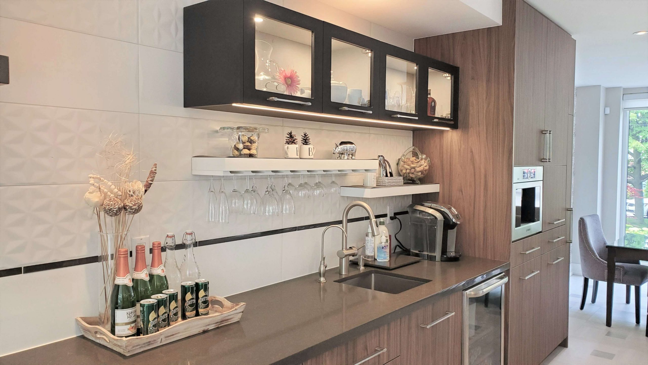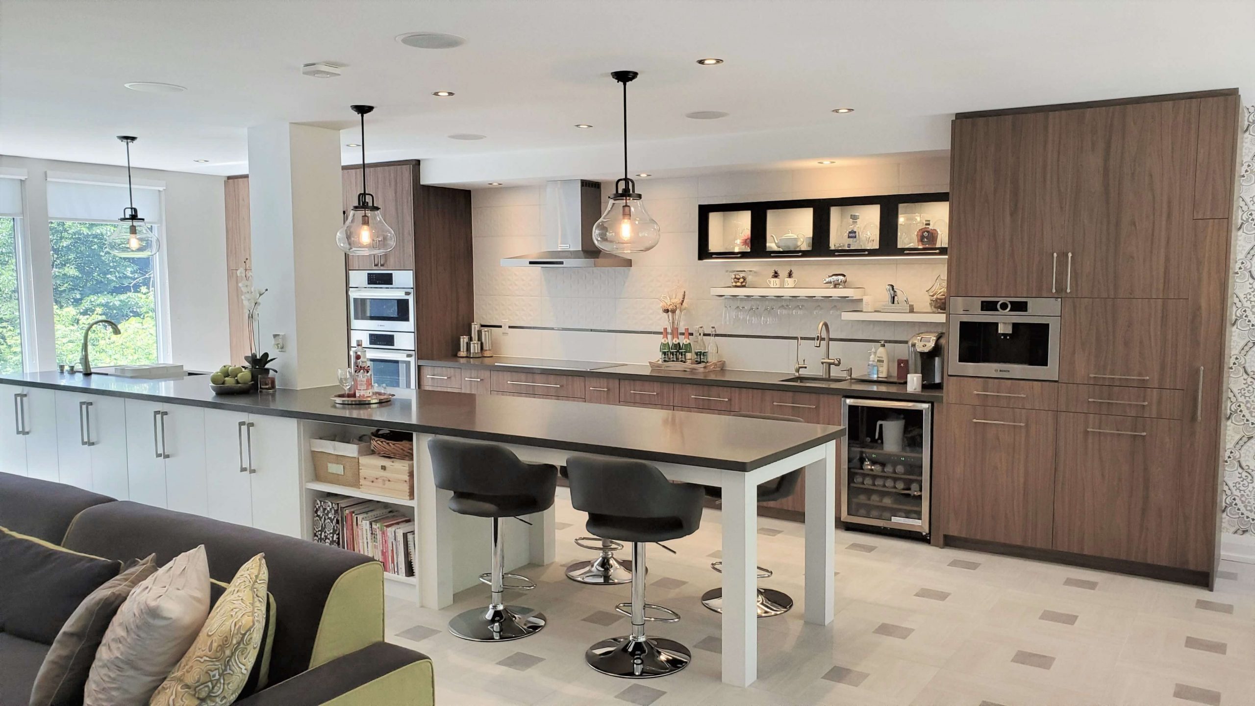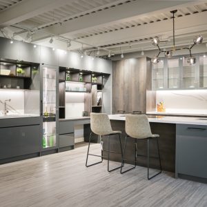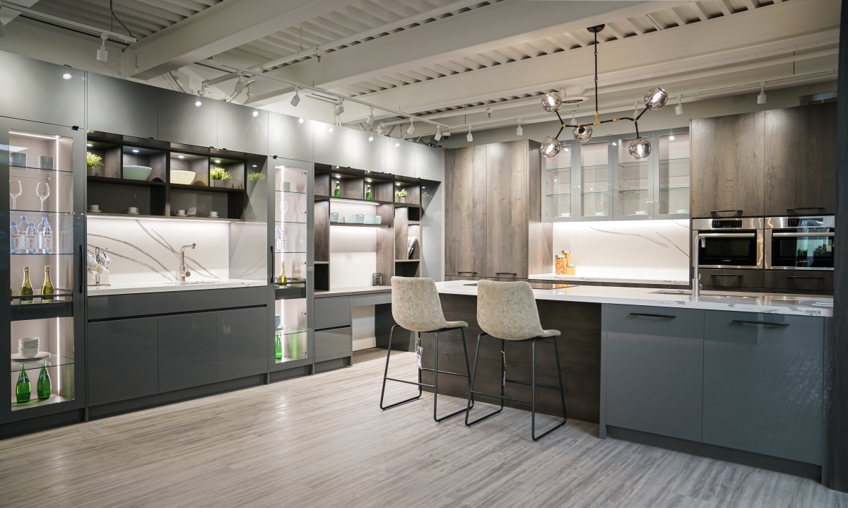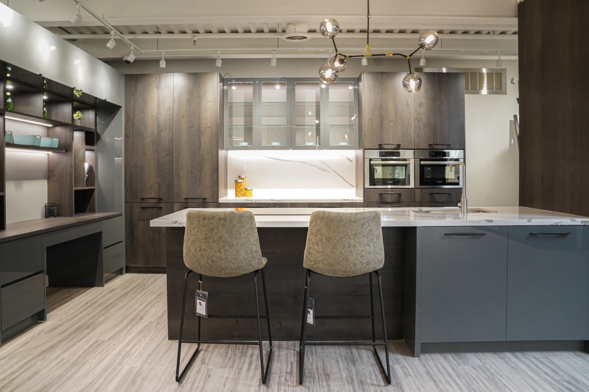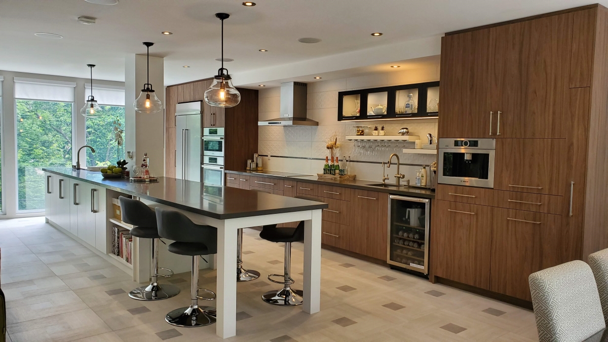 Our contemporary designs take advantage of open floor plans by streamlining features. You will see the use of floating cabinets, flat panel doors, and striped wood grains.